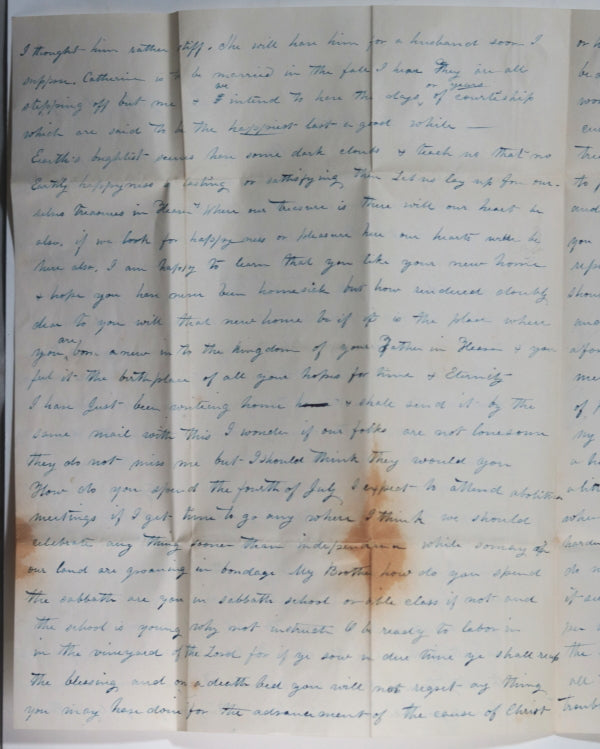 1844 letter from Huldah Beach in Troy NY to her brother Giles in Guildford Center....