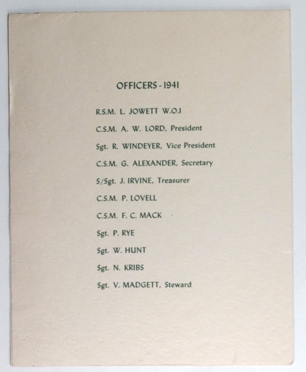 Pamphlet for dinner held by Queen’s York Rangers NCOs at the Fort York Armory in Toronto...