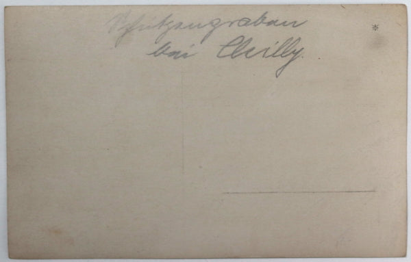 Écrit au dos '"Spitzengraben bei Chilly" se traduit de l’allemand par : "Tranchée de première ligne près de Chilly"
