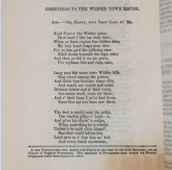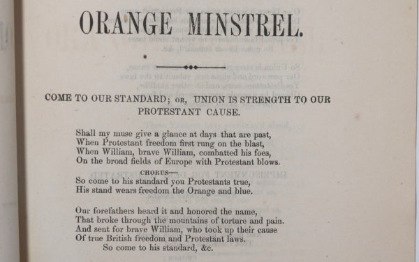 This pamphlet reflects the cultural and political tensions of mid-19th century Canada, especially among Protestant Loyalists aligned with the Orange Order. McBride’s verses often address perceived injustices and affirm allegiance to British institutions. The Orange Order was influential in Ontario politics and social life during this period, and pamphlets like this served both as entertainment and ideological reinforcement.