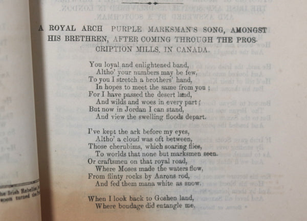 #6 A Royal Arch Purple Marksman’s song, amongst his Brethren, after coming through the proscription mills, in Canada